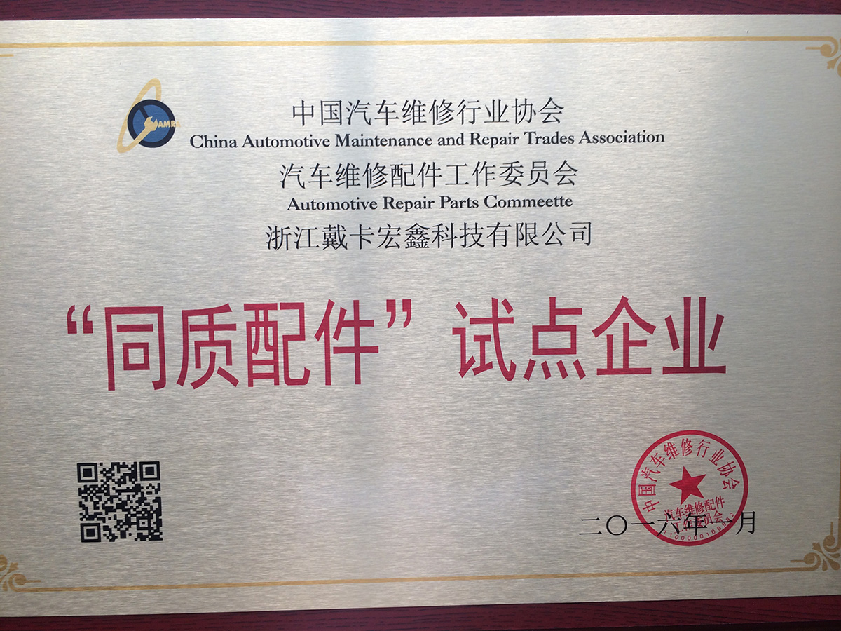 2016年,宏鑫成為國內(nèi)最大的乘用車后市場鍛造鋁車輪供應(yīng)商,并獲得“中國汽車維修行業(yè)協(xié)會”頒發(fā)的“同質(zhì)配件試點企業(yè)”榮譽證書。