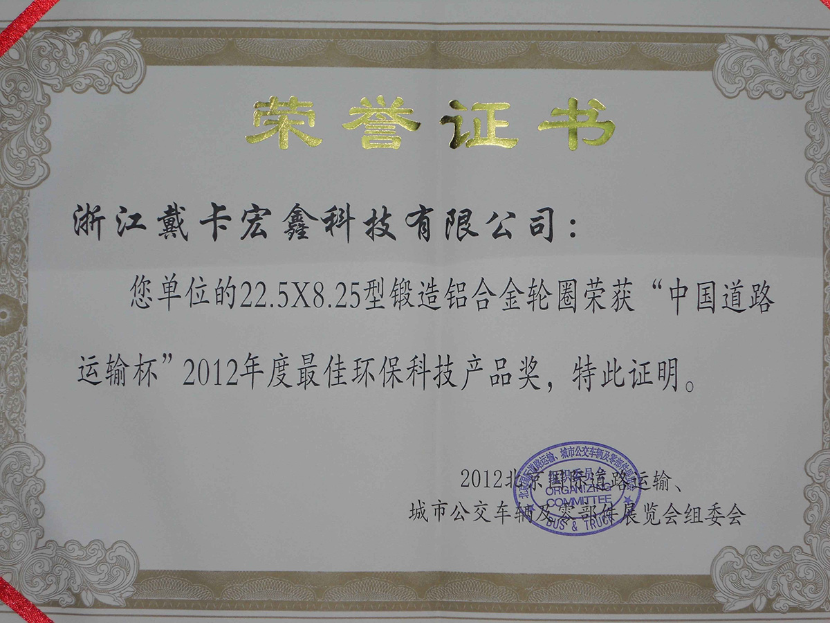 2012年,獲得“北京國際道路運輸組委會”頒發(fā)的“2012年度最佳環(huán)保科技產(chǎn)品獎”。