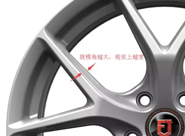 正面判斷:鑄造輪轂一般由于工藝的原因(此處省去一萬字)拔模角一般需要7°到10°,鍛造輪轂拔模角一般0°到3°,所以可以直觀的判斷如下圖